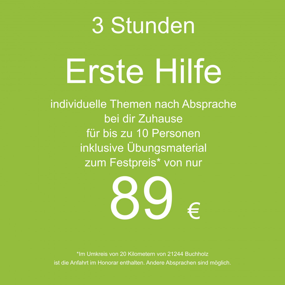 Der Kurs findet ganz individuell in deinem Wohnzimmer, im Vereinshaus, im Partykeller, oder bei gutem Wetter auch gerne im Garten statt. Ich komme mit Übungsmaterial zu Euch und mache Euch zu potenziellen Lebensrettern.